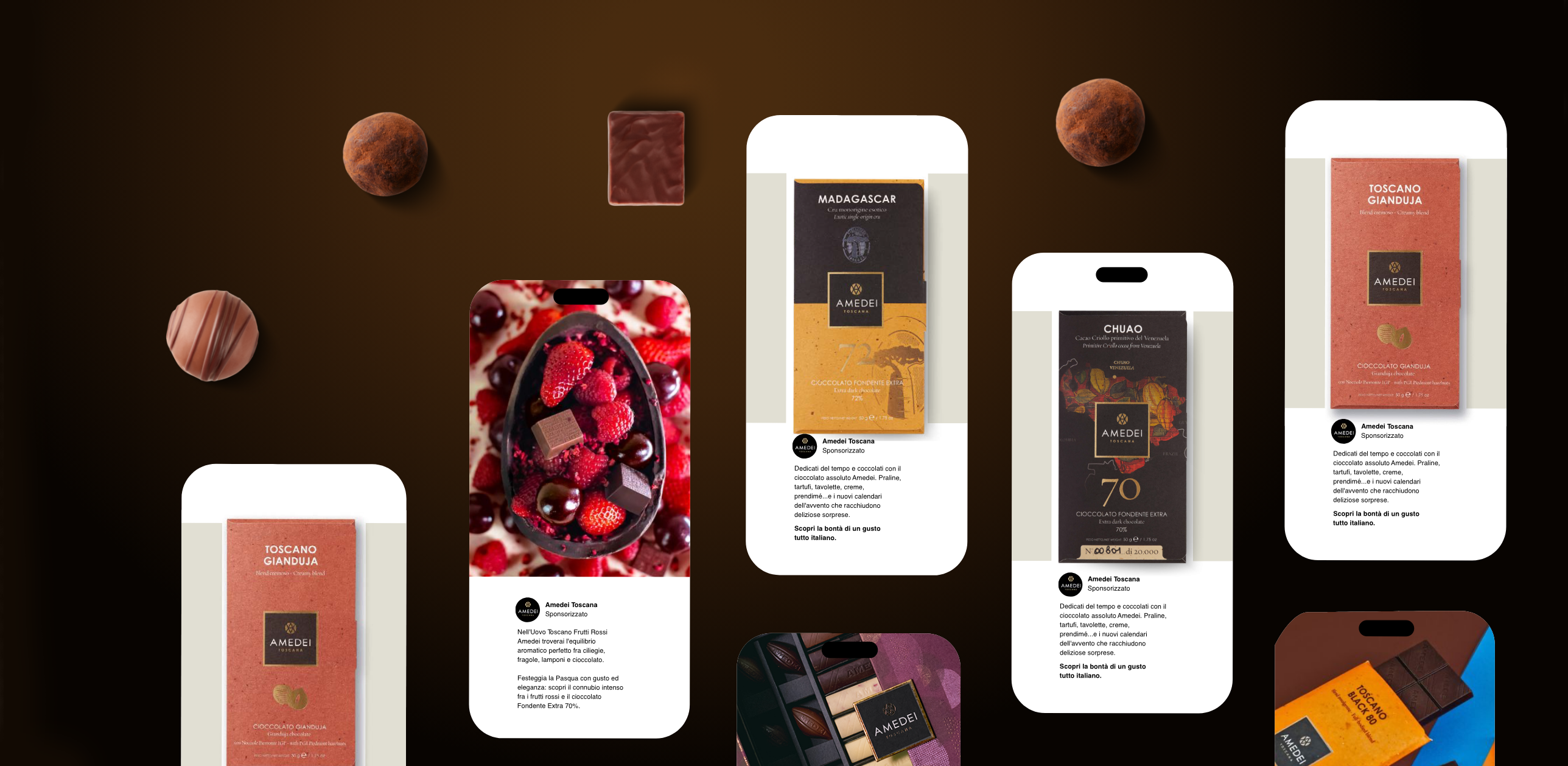 Oltre al restyling del sito, è stata rinnovata l'intera immagine digitale di Amedei, puntando su una content strategy multicanale che valorizza la qualità dei prodotti e sfrutta il desiderio per cioccolato, praline e tavolette, frutto dell'arte dei maitre chocolatier della maison, come leva di business.