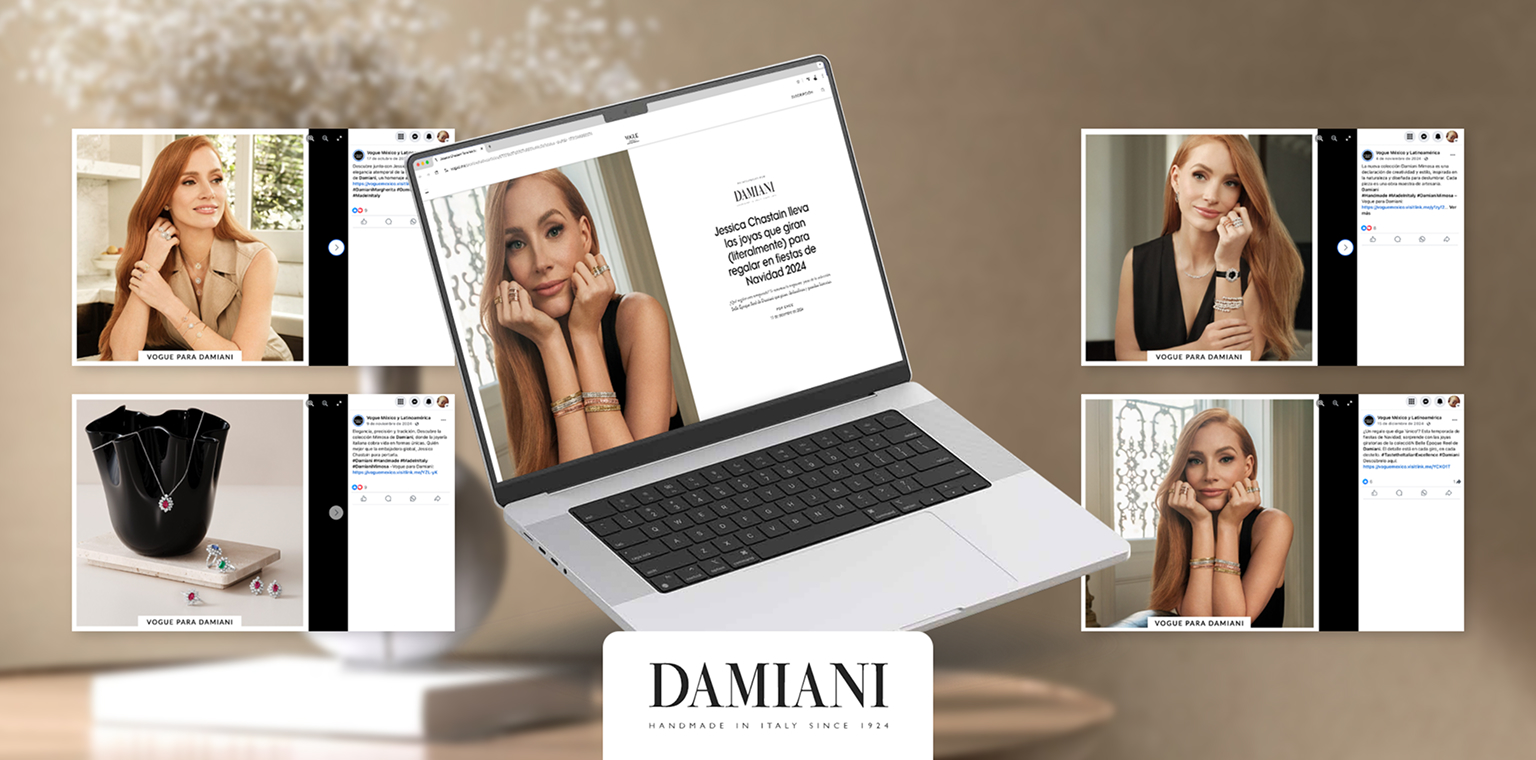 In parallel, Adview also secured advertising space in the specialized fashion and style digital magazine, Vogue Mexico. For two consecutive years, this included dedicated articles about the Damiani brand, accompanied by respective posts on Vogue's social media channels.